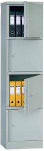 Четырёхсекционный металлический шкаф, предназначенный для хранения крупных бумажных архивов, финансово-бухгалтерской отчётности и прочей документации в медицинских учреждениях любой направленности. Шкаф отличается небольшой шириной, что актуально при установке в помещениях с малой площадью: ординаторских, кабинетах старших медсестёр и т.д.