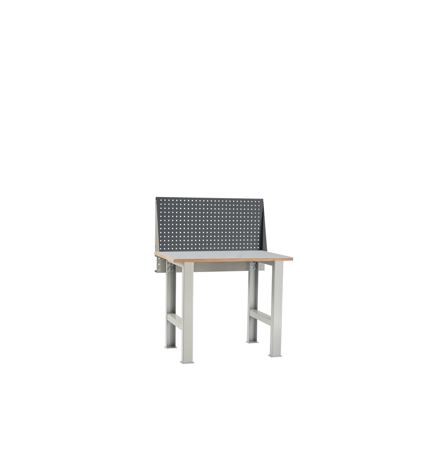 Основной функциональной частью верстака ВЛ 100-01-Э1 МФ комплектуется перфорированным экраном и столешницей из влагостойкой фанеры толщиной 24 мм с установленным сверху стальным листом (3 мм), которая устанавливается на металлические сварные опоры и перфорированным экраном. Длина столешницы – 1000 мм, глубина – 700 мм. Все металлические элементы окрашены эпоксидной порошковой краской серого цвета (RAL 7038). Такая краска защищает от мелких царапин и появления коррозии.